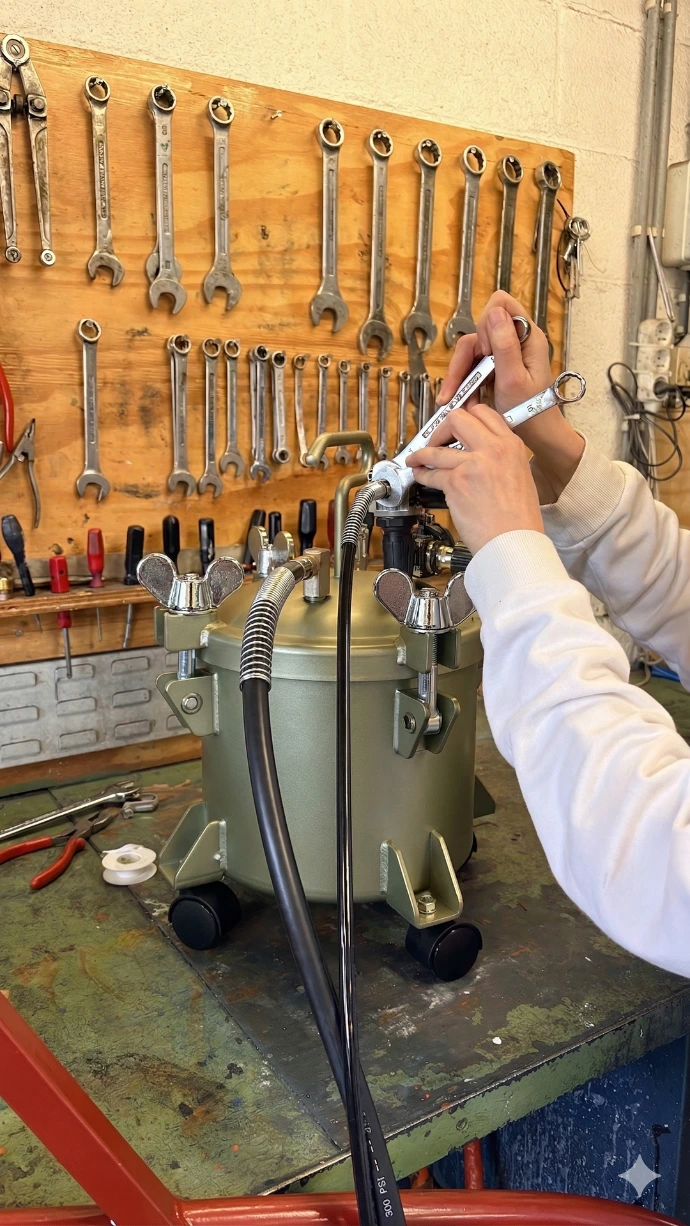 Pour l’application d’adhésifs, nos réservoirs sous pression sont assemblés sur mesure et restent une offre unique au monde. Ce n’est pas un slogan ; c’est notre réalité terrain depuis 38 ans.